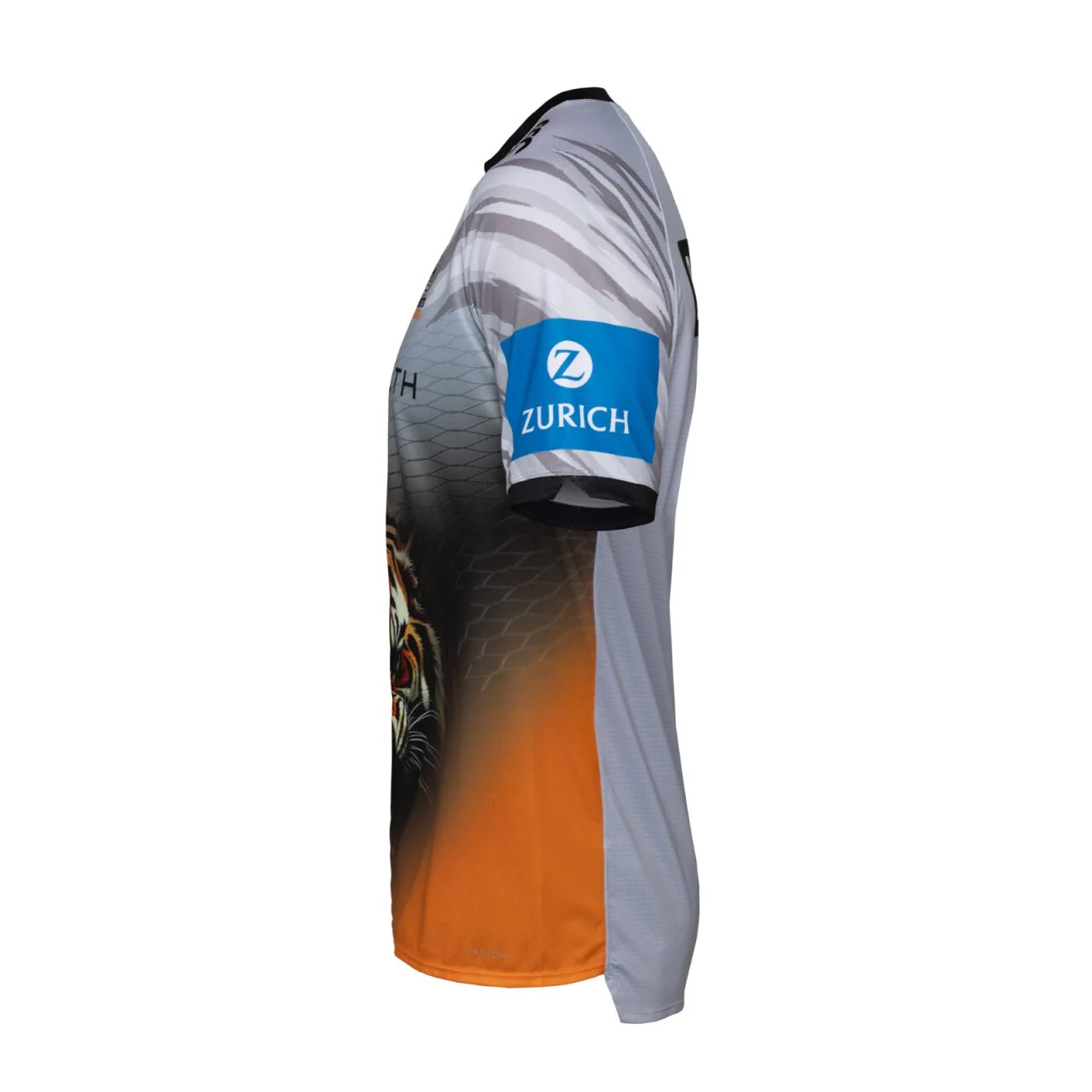 Unleash the power. The Wests Tigers 2026 Adult Coaches Tee symbolises passion, commitment and performance, with fierce Tiger print on white and striped chevron detailing. Made using Canterbury's VAPODRI technology and recycled sports mesh, this Tee is designed for strength, breathability and durability, so you can push through any session.