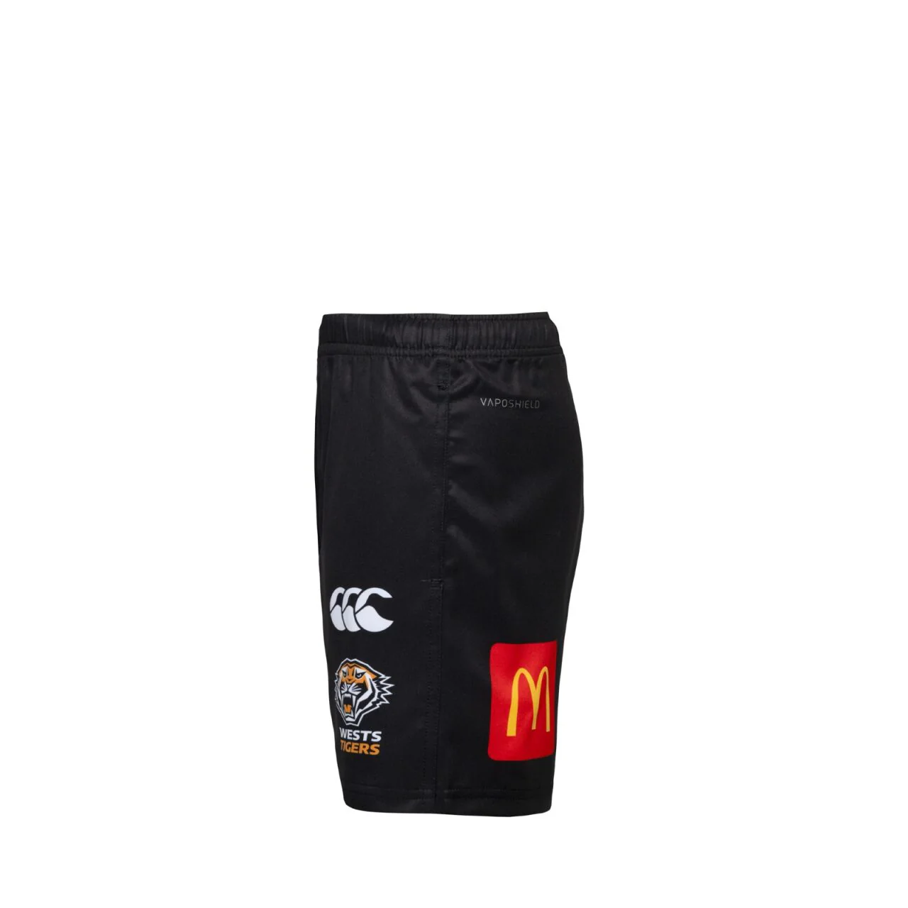 Unleash the power. The Wests Tigers 2026 Kids Training Shorts, feature an elasticated waist with drawcord for comfort and fit, along with key sponsors branding, to show who you support. Using Canterbury's VAPODRI fabric technology, these shorts provide comfort and versatility for kids on the move.